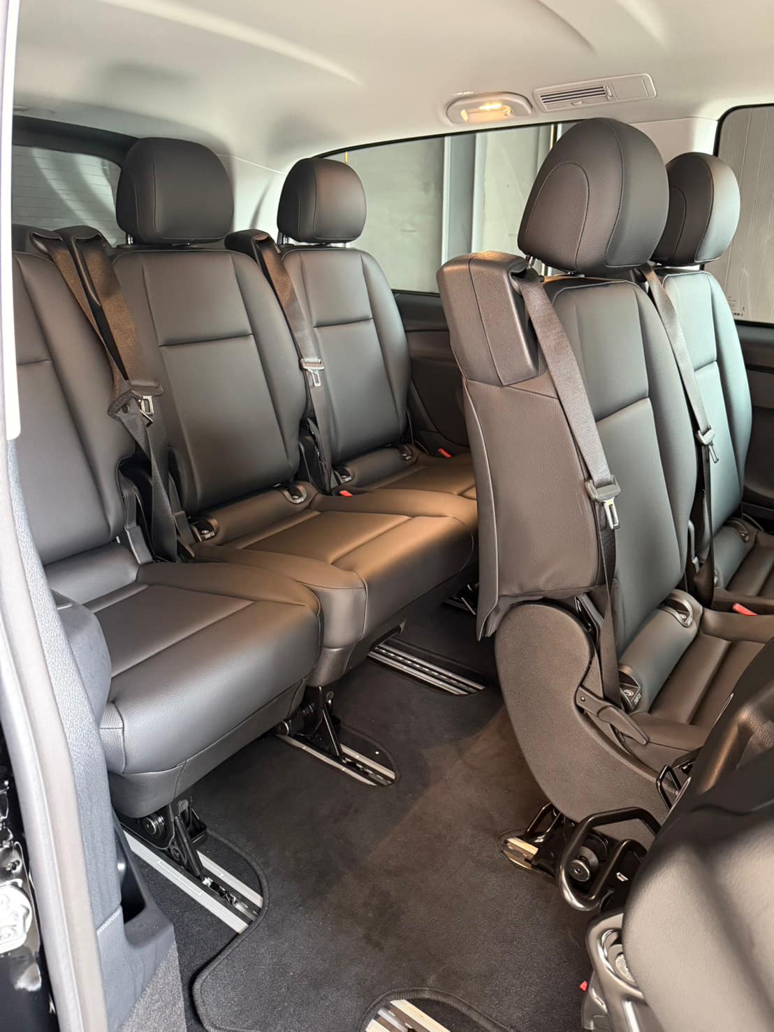 Mercedes-Benz VITO 九人座為德系豪華品牌打造的專業商旅車,結合安全、舒適與空間機能性,擁有沉穩大器的外觀、靈活的乘載配置與絕佳的行路質感,是租車公司提供高端團體、商務接送與VIP貴賓專車的首選。
